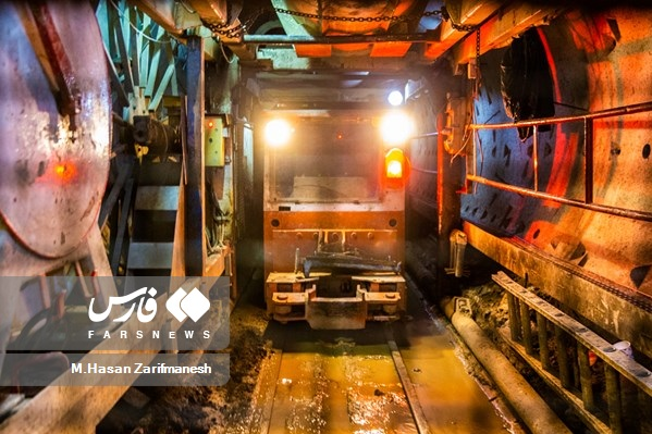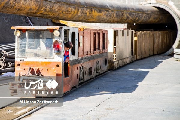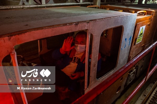 کارگران تازهنفس شیفت بعدی میروند که سوار شوند. فرصت مناسبی است تا با آنها همراه شویم. لباس ایمنی و کلاه، تنها داشتههایم در این سفر حدود ۲ و نیم کیلومتری زیرزمینی است. باید از آسمان خداحافظی میکردیم. بعدازاین هر چه هست سیاهی و تاریکی است تا برود که چشمها عادت کنند. هر ۱۰ متر به متر با نور لامپ ضعیفی تونل روشن میشود و میتوان دیوارههای تونل را دید. هرازگاهی در روشنایی ضعیف تونل اعداد و ارقامی روی سطح بتونها به چشم میآید و این اعداد بیشتر و بیشتر میشوند چند باری تلاش میکنم تا از کارگری که در فاصله نیم متریام نشسته معنی این اعداد را بپرسم؟ میپرسم، اما صدایم در هیاهوی تونل گم میشود. جدال بین چرخهای لوکوموتیو و ریل بهقدری بالاگرفته است که اگر فریاد هم بزنی صدایت به گوش کنار دستیت نمیرسد. باکمی تأمل میتوان فهمید که تنها راه بیشتر دانستن، فقط مشاهده است پس از پنجره واگن در حال حرکت فقط نگاه میکنم.