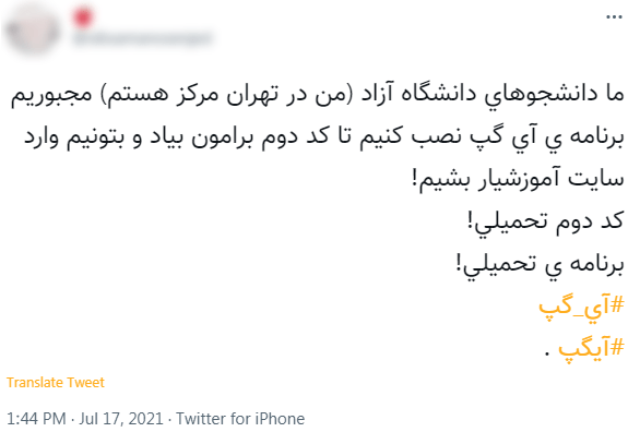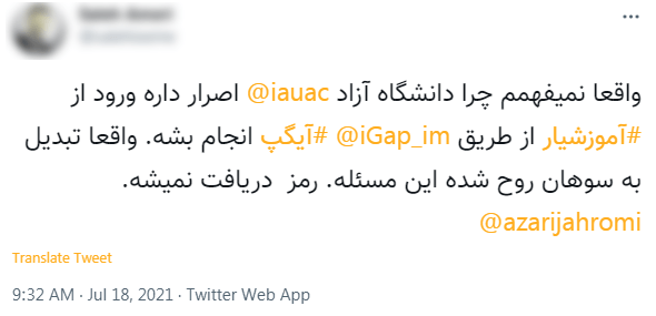 چند ماهی میشود ورود به سامانه آموزشیار دانشگاه آزاد منوط به دریافت کد از پیام رسان آیگپ شده و این موضوع انتقاد دانشجویان دانشگاه آزاد را به همراه داشته است؛ موضوعی که خود پیام رسان آیگپ پیشتر به دیجیاتو درباره آن گفته بود در اجرایی شدن آن تصمیمی نداشته و همه چیز به سیاستهای خود دانشگاه آزاد برمیگردد. اما در روزهای اخیر سطح نارضایتیها افزایش شدیدی داشتهاند.